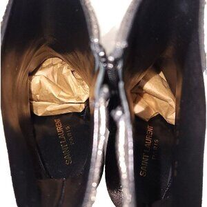Saint Laurent Lou Ankle Boot 36 6 Metallic Leather Gun Metal New