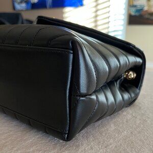 Y-patterned matelassé quilting with aged gold hardware - this leather is VERY GOOD QUALITY.