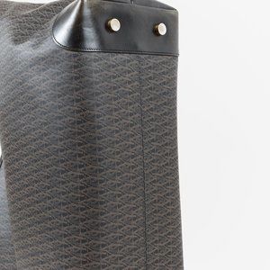 Composition: Coated canvas, leather, metal hardware, canvas lining