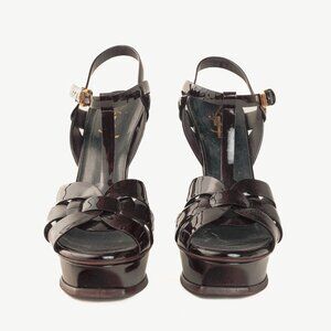 Saint Laurent Tribute Open Toe Bourgogne Patent Leather Platform Sandal
