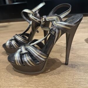 Saint Laurent Tribute Platform Sandal Size 39 Pewter and Gold