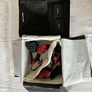 Details: This heel is stunning. A perfect gift for someone who loves to stand out. Heel height is 4". The leather is incredibly beautiful and surprisingly soft. They are brand new with no flaws. Comes with everything pictured including dust bags.