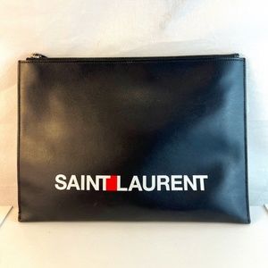 This incredibly classic and chic pouch features the original Rive Gauche Saint Laurent logo