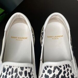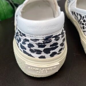 Saint Laurent White And Black Leopard Print Venice Slip-On Sneakers w/ Box