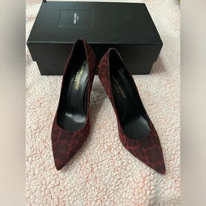 This particular leopard print colorway in red is uncommon and highly sought after by Saint Laurent collectors. Don't miss the opportunity to own these designer pumps at a fraction of retail cost!
