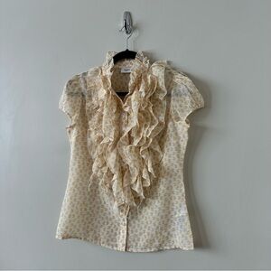 The Lilja top by Saint Tropez is the perfect wardrobe piece to dress up jeans or pull on with a skirt for date night. Silky and oh so ruffly! We love the high collar and puffed sleeves.