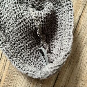 Stylish charcoal waffle knit head towel with button for fast drying hair.