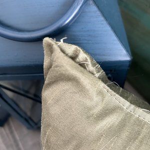 This pretty saje green cushion/pillow is a pretty accessory for any room. Overall the cushion is in great condition except for a small spot where the stitching is coming apart. This can be easily fixed if you have thread and needle. Size is in photos