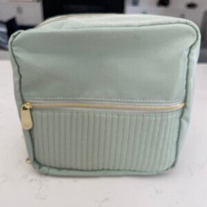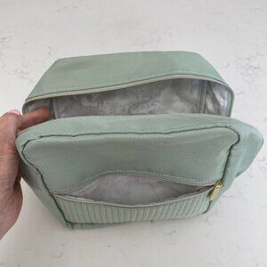 Saje Natural Wellness Cosmetic Toiletry Zip Bag in Mint Green w Gold Metal Hardware NWOT