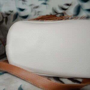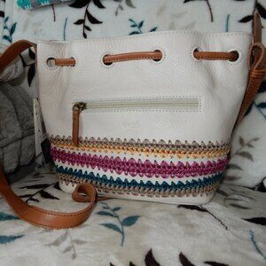 beautiful ivory leather, drawstring shoulder bag. NWT, 12"x8". Was $179.