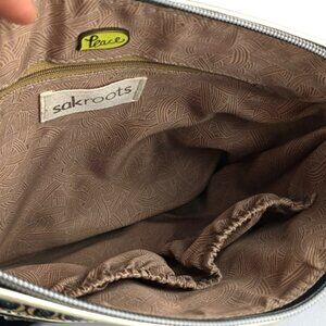 Excellent pre-owned condition, Sakroots crossbody medium bag coated canvas boho art-to-wear with a multi neon color print
