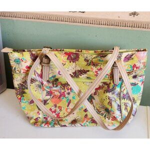 Carry all your essentials in style with the Sakroots Peace Purse medium satchel. This trendy tote features a multicolor animal print pattern on vinyl exterior material, complemented by a taupe handle/strap color and brown hardware. With a spacious interior lined in brown and a size that is perfect for everyday use, this bag is a must-have for any fashion-forward woman. The Sakroots brand is known for its unique designs, and this purse is no exception. Its peace sign charm adds a touch of fun and whimsy to the overall style. The satchel design makes it easy to access your belongings on the go, while the sturdy construction ensures it will last for years to come. Upgrade your handbag collection with the Sakroots Peace Purse medium satchel.
