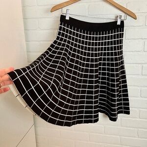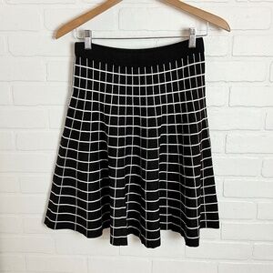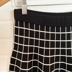 Saks Fifth Avenue Black Label Knit Skirt Plaid Academia Black Cream High waist M