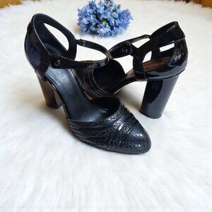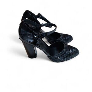 Saks Fifth Avenue Black Patent Leather D’Orsay Heels w/ Ankle Strap, Size 7.5M