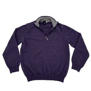 Saks Fifth Avenue Mens medium Purple 100% Merino Wool Mock Neck 1/4 Zip Sweater
