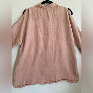 Saks Fifth Avenue Womens Button Up Linen Cold Shoulder Blouse Blush Pink Sz L