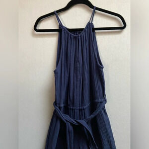 Saks Fifth Avenue cotton navy high neck belted jumpsuit Sz S