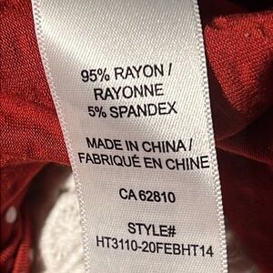 Material: 95% rayon, 5% spandex