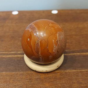 Stunning Red Jasper Sphere is beautiful but does have a large chip out of one side, this can be rotated out of sight. Sphere is priced to reflect this damage. Perfectly imperfect beauty is still marvelous in its own way!