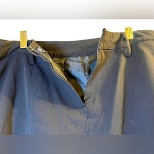 Black knee length skirt with beltloops for a belt (belt not included).