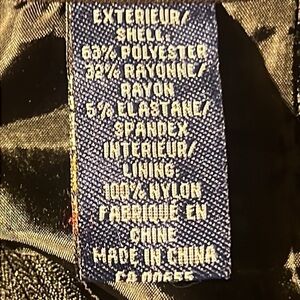 Outer shell 65% polyester / 32% rayon / 5% spandex