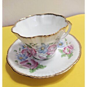 Salisbury England Cup & Saucer Set Pink & Blue Flowers Gold Trim 1950's