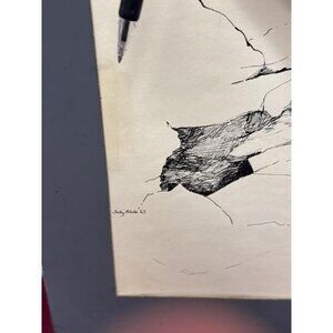 Sally B Hooff Ink Drawing “Rock Study Halibut Bay” PEI Artist Original Art