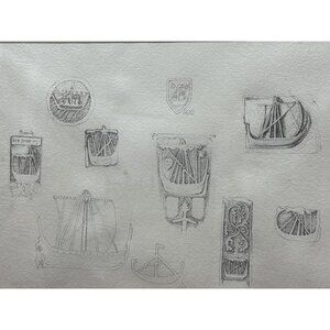 Sally B Hooff Ink on Handmade Paper “Flotilla of Galleys” Scottish PEI