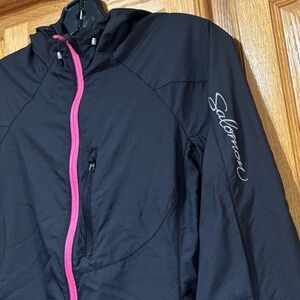 Salomon Clima Wind Black and Pink Water-Resistant Windbreaker Jacket XS