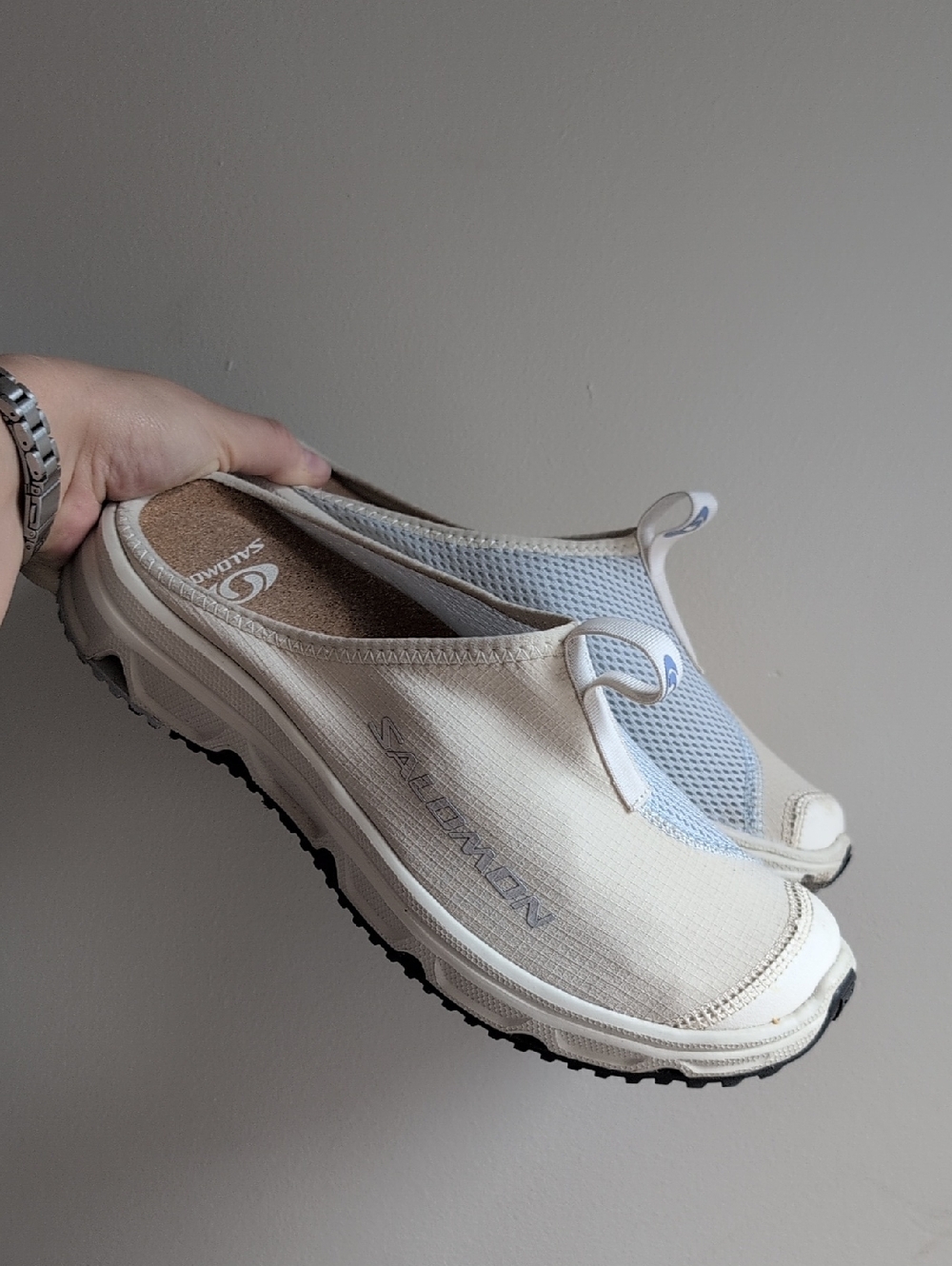 salomon rx slide 3.0 in almond milk/ ballad blue worm twice for a couple hours women's size 8