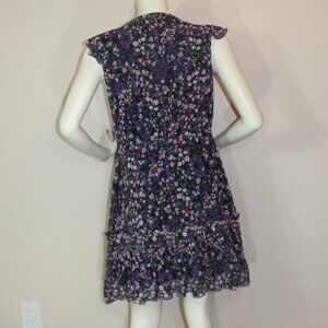 Saloni Bea Watercolor Blue Floral Button up lined Dress woman's US 8