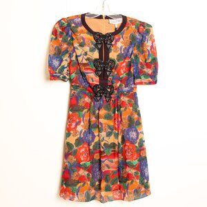Saloni Jamie Short Dress 100% Silk Floral Beaded Bow Size 0 / XS
