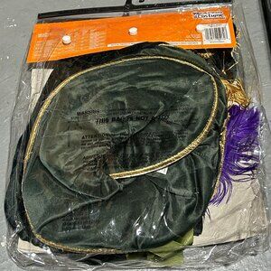 I have a like-new Saloon Madame Costume by California Costumes in size Small. The costume includes the dress, headpiece, choker and feather. The package was opened so I could try on the costume. I noticed the purple jewel on the dress at the hip is missing. In addition, the costume does not include the gloves, bracelet, fishnets or boots shown in the pictures. Product code is Item # 01203.