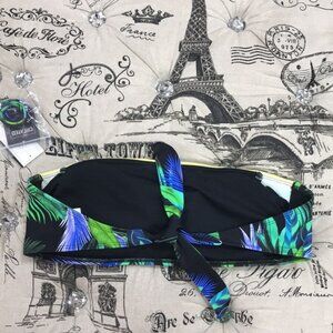 Sleek stripes and a vibrant tropical print pair perfectly on this beautiful bandeau bikini top from Salt + Cove, finished with a charming tie back and removable straps for versatile styling.