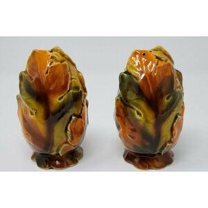 Salt & Pepper Shakers Fall Autumn Leaves Japan Ceramic Vintage 4.5 x 3 in