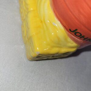 John Deere pair of salt and pepper shakers including a barn and a grain silo. In good used shape as shown and both include the small plastic stopper on the bottom. They do have a few small white paint chips that are tough to see unless you look close.