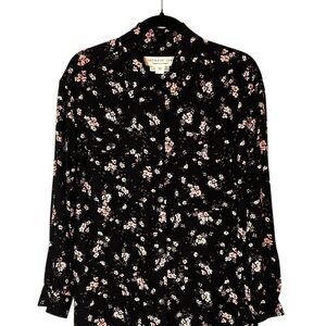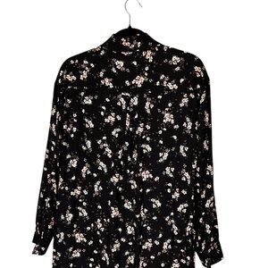 SaltWater LUXE Women's Black Floral Button Down Long Sleeve Midi Dress- Size XS