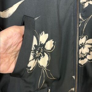 Saltwater LUXE Black and Cream Bomber Jacket with Floral Print Size Small