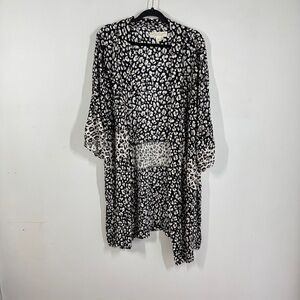 Saltwater Luxe Black & White Animal Print Boho Chic Layering Piece Kimono Cardigan Duster Size M
