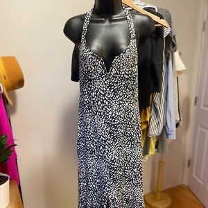 Such a beautiful and soft fabric. The elastic on the side underarm...the defined V cut with inner plating to keep in place...the back-tie options...this truly is one of a kind. Falls beautifully against your body and fits like a soft form-fit...with a slight slit up front, and a gentle ruffle along the trim.