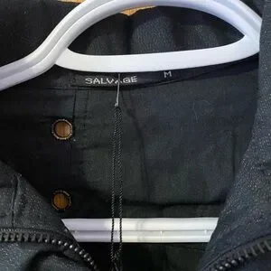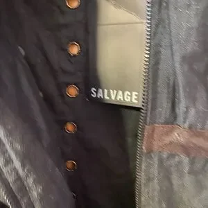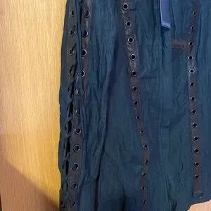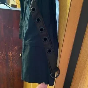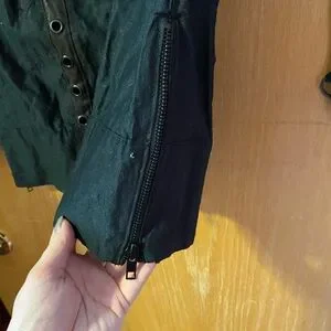 Never worn. Jacket with grommet details. Zippers on both sides. Material has a shimmer.