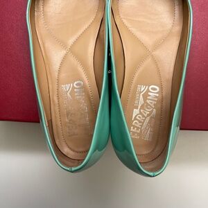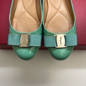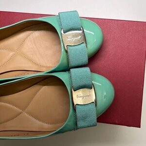 Salvatore Ferragamo Aqua Green Varina Bow Flats Shoes women size 5.5