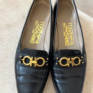 Salvatore Ferragamo Black Leather Loafers with Emblem, EU size 37