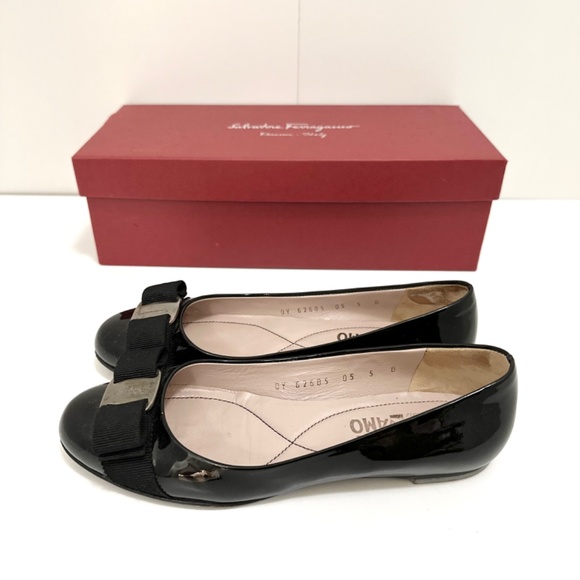 Salvatore Ferragamo Black Patent Leather Flat Size 5