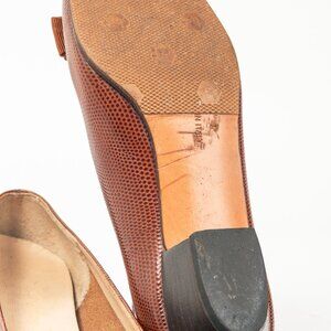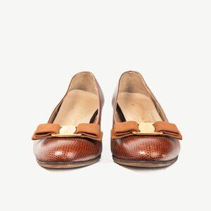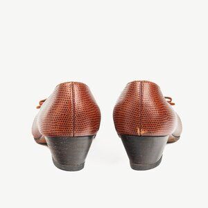 Salvatore Ferragamo Boutique Lillaz Tan Lizard-Embossed Bow Pumps
