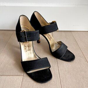 Salvatore Ferragamo Designer Vintage Black Velvet Heels