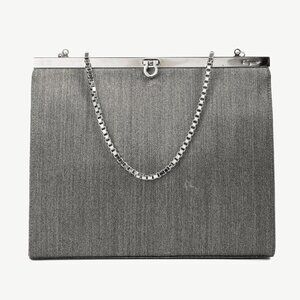 Salvatore Ferragamo Grey Flannel Gancini-Clasp Evening Bag