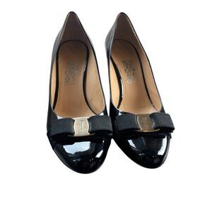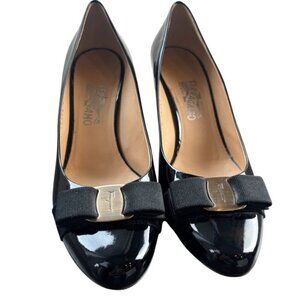 Salvatore Ferragamo Heels Women's Size 9.5 Black Patent Leather