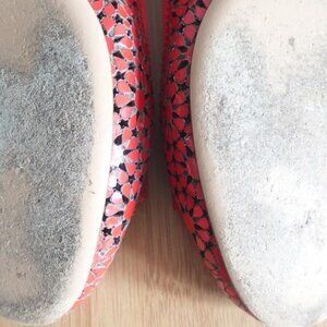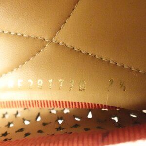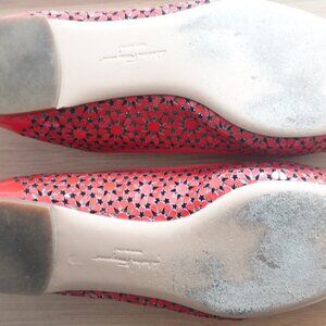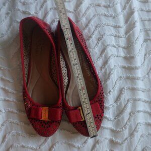 Salvatore Ferragamo Italy red Laser Cut Tooled Floral Patent Leather Varina Bow Ballet Flats labeled size 7 1/2. See pictures for size label and condition. Price reflects condition. Purchased from Fashionably Yours in Toronto.