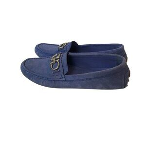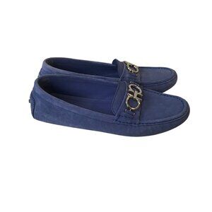 Salvatore Ferragamo Ladies Berra Gancini Driver Suede Moccasin In Blue Size 9
